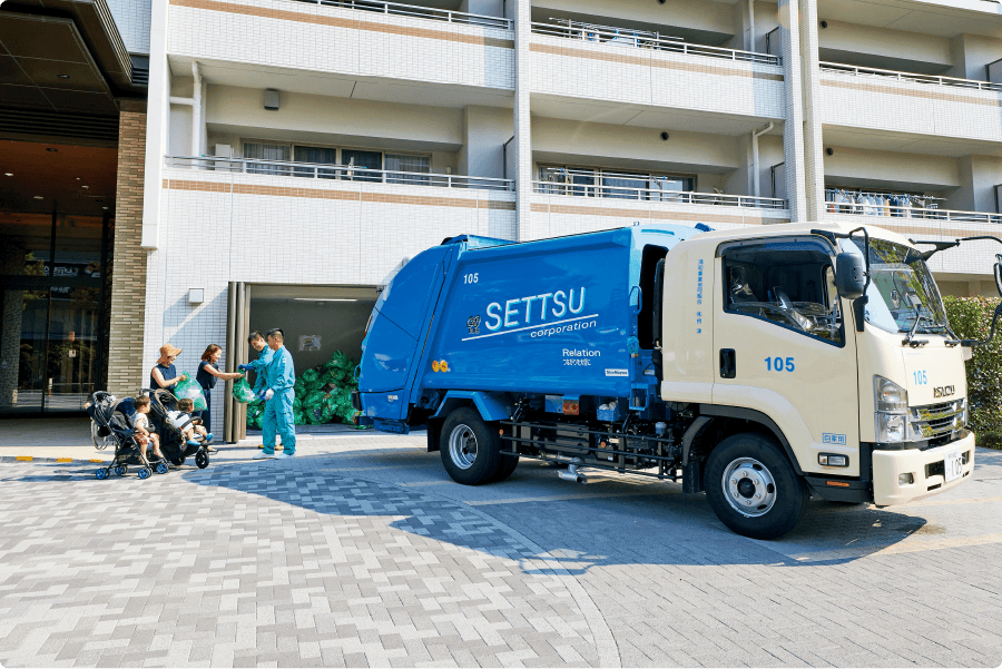 当社グループでは、兵庫県尼崎市・芦屋市、京都府京都市、千葉県浦安市、三重県名張市等より一般廃棄物収集運搬業務を受託しており、一般家庭および各種店舗や事業所から排出されるゴミの収集運搬を行っています。