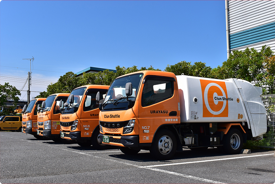 千葉県浦安市において、ご家庭や事業活動にともなって排出された⼀般廃棄物の収集運搬及び再資源化事業を⾏っています。⼀般廃棄物収集運搬を通じて浦安市内の環境美化に取り組んでいます。
