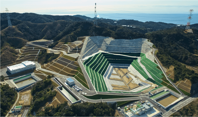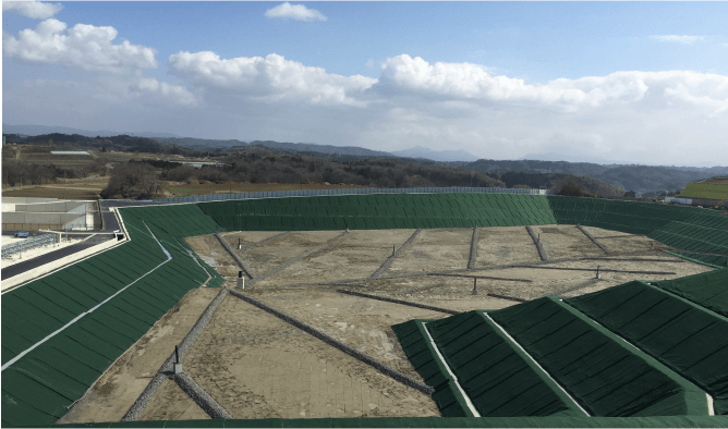 そのままの状態では空気中に飛散しない「非飛散性アスベスト廃棄物」は、再生処理が困難なため、最終処分場で適正に埋め立てています。