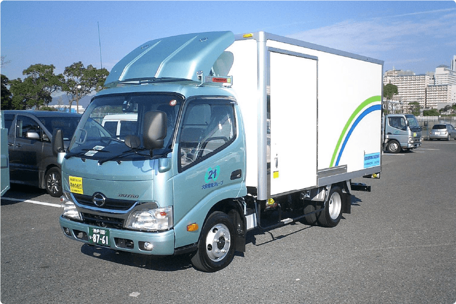荷台に断熱加工が施された保冷車は、外気の影響を受けにくい構造になっており、菌の増殖や拡散防止はもちろん、悪臭の抑制にも効果を発揮しながら、安全に感染性廃棄物を運搬します。