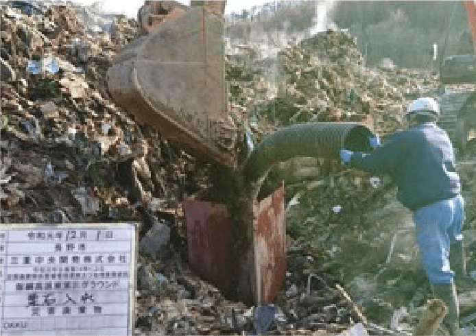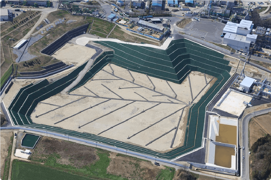 大量の災害廃棄物が発生した際、止むを得ずしばらくの間、仮置場内で保管しなければならない場合、昇温・発火防止のためのガス抜き管の施工や、延焼防止のための堆積廃棄物の成形などの対策も行っています。