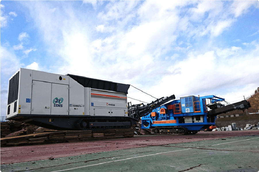自治体様の処理施設の余力を活用した災害廃棄物処理をサポートさせていただく事が可能です。当社グループではこれまでの経験から、発生した災害廃棄物の種類や仮置場の状況に合わせ最適な破砕機、選別機をご提案し、域内処理の実現をサポートいたします。域内処理が困難な廃棄物や、スピードが求められる場合には当社グループの処理施設にて広域処理、バックアップします。