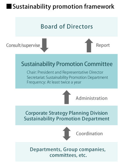 The Energy Management Committee, which manages energy for the entire Group, reports on the actual energy consumption of each department, identifies energy issues, examines countermeasures, and horizontally deploys successful energy conservation case studies.