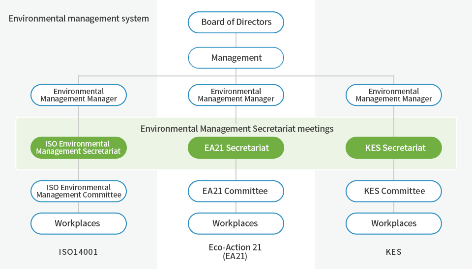 To realize the environmental philosophy we profess as a corporate group that deals with the environment, we outline a basic policy on the environment for the entire Company, each recycling facility formulates an environmental policy, and we pursue initiatives based on our environmental management organizational structure.