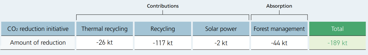 The Group aims to reduce greenhouse gas emissions in society as a whole by promoting initiatives to recycle waste into resources and energy. For the fiscal year ended March 31, 2025, our contributions to greenhouse gas emission reduction and absorption amounted to 189 kt.