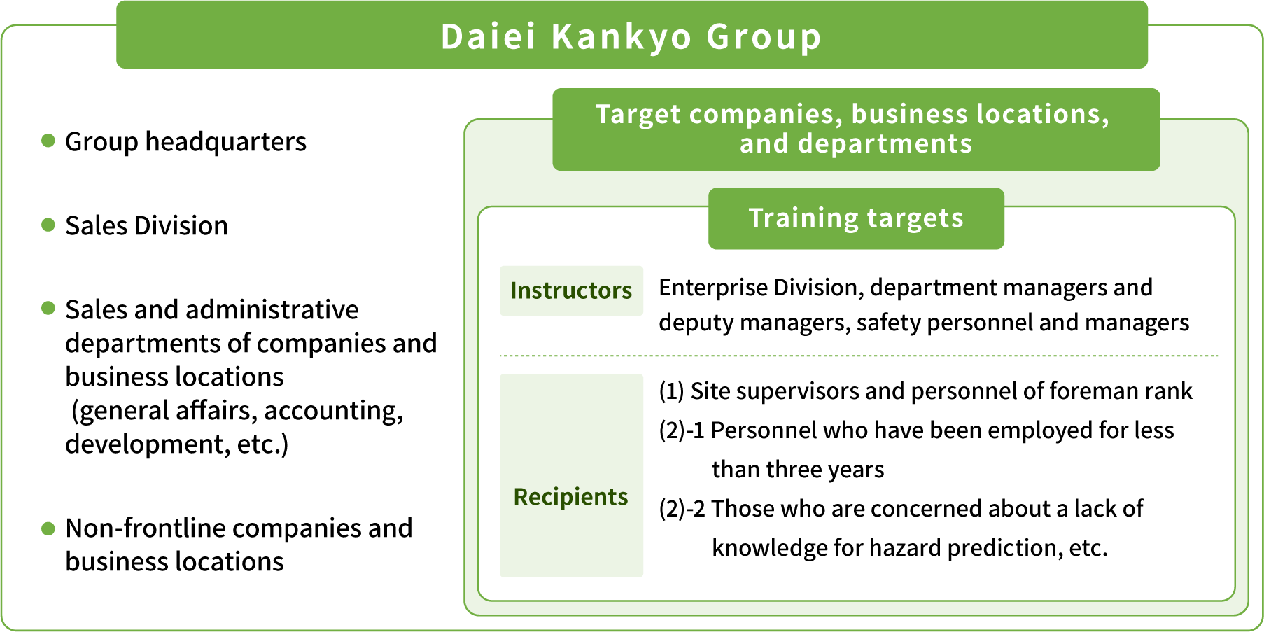 For exclusive partner companies who are stationed at a work site, we perform the same integrated data management as we do for Daiei Kankyo Group employees and temporary workers. The same activities are also implemented for safety education, improving the ability to detect hazards on a routine basis, and alerts.