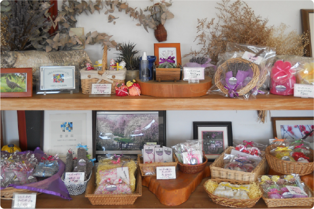 - 農場で収穫したラベンダーでポプリを作り、オリジナルの小物や御坊の天然塩、農家さんの手作りジャムなどを販売しています。