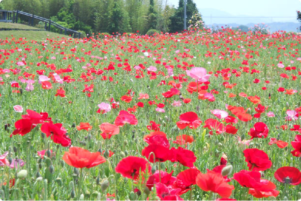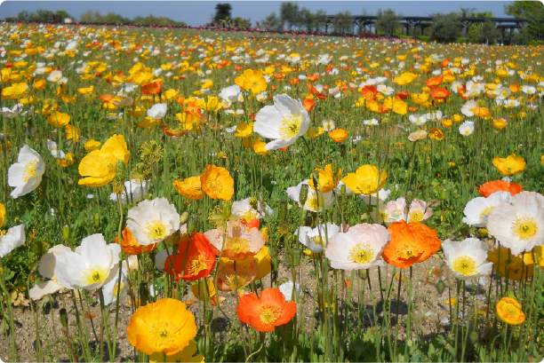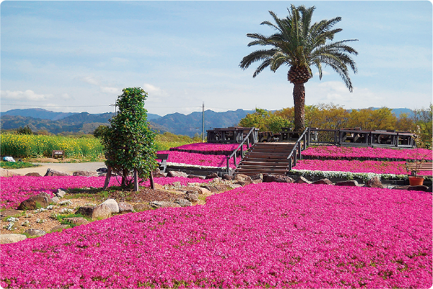 76,000m2の園内には四季折々の花が咲き乱れる農園エリアの他、多目的グラウンド、ハーブ園、日本庭園などがあり、